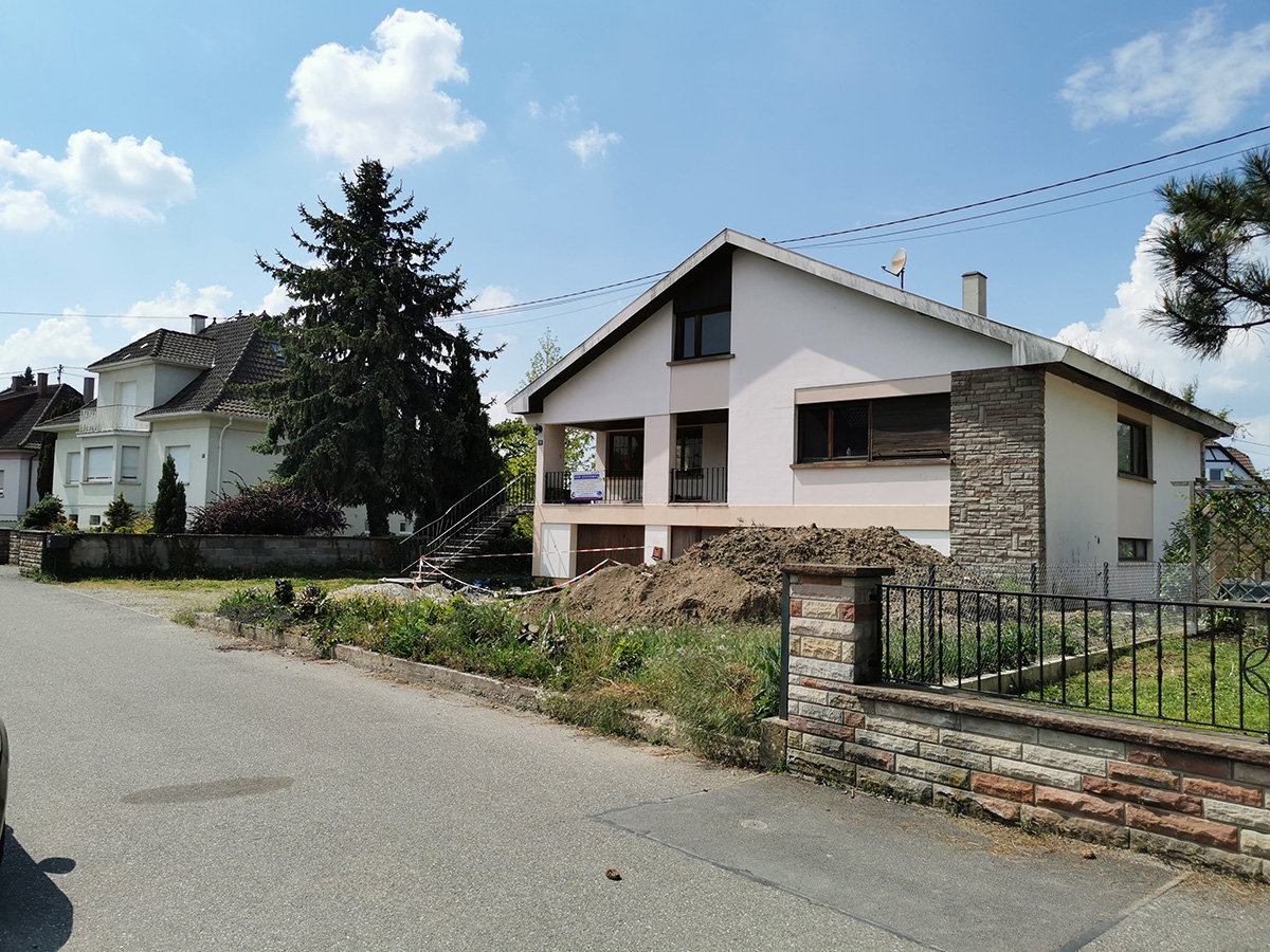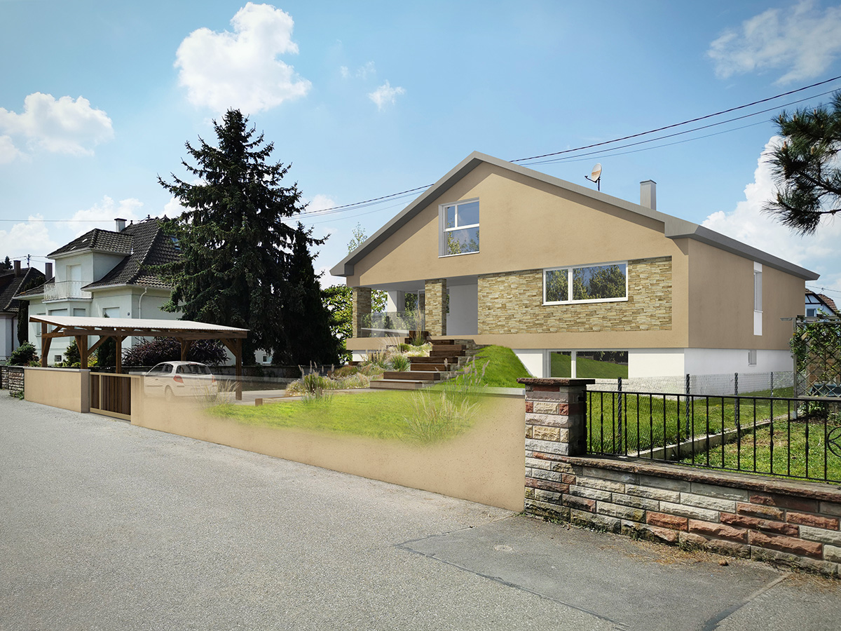 L’aspect extérieur de la maison sera également revisité dans la totalité, ainsi que l’accès piétons qui avant travaux est très difficile à saisir et à qualifier. Le Maitre d’Ouvrage a de plus souhaité profiter des travaux d’aménagement extérieurs pour ajouter un carport de deux places.