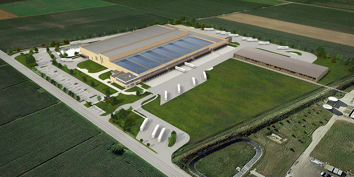 Le projet SCAPALSACE est un entrepôt froid positif à vocation de logistique situé à Niederhergheim (68), le long de l’autoroute A35 dans le sens Colmar-Mulhouse. La surface de plancher du bâtiment est supérieure à 27 000m² dont 1 500m² sont occupés par les bureaux. Soumis aux installations classées pour la protection de l’environnement, la toiture de l’ouvrage comporte 10 000m² de panneaux photovoltaïques. L’entrepôt faisant l’objet d’un flux journalier très dense de poids-lourds, il ne compte pas moins de 60 portes sectionnelles. L’assiette du terrain est de 113 000m² dont 18 000m² sont réservés au stationnement de 200 véhicules légers et une flotte de 85 poids lourds répartis sur 3 parkings. Une étude particulièrement attentive a été faite pour garantir une sécurité optimale de la gestion des flux et du site.